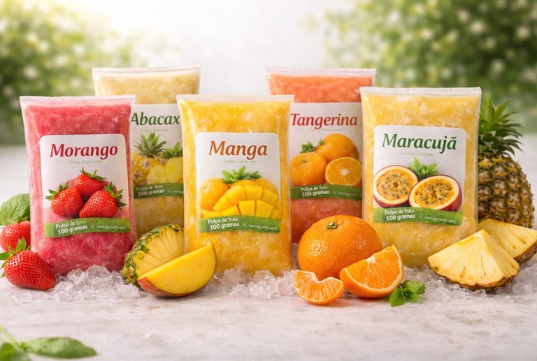 A polpa de fruta congelada é um produto 100% natural, obtido das partes comestíveis das frutas maduras e frescas, sendo assim um alimento sem conservantes, corantes ou produtos químicos.